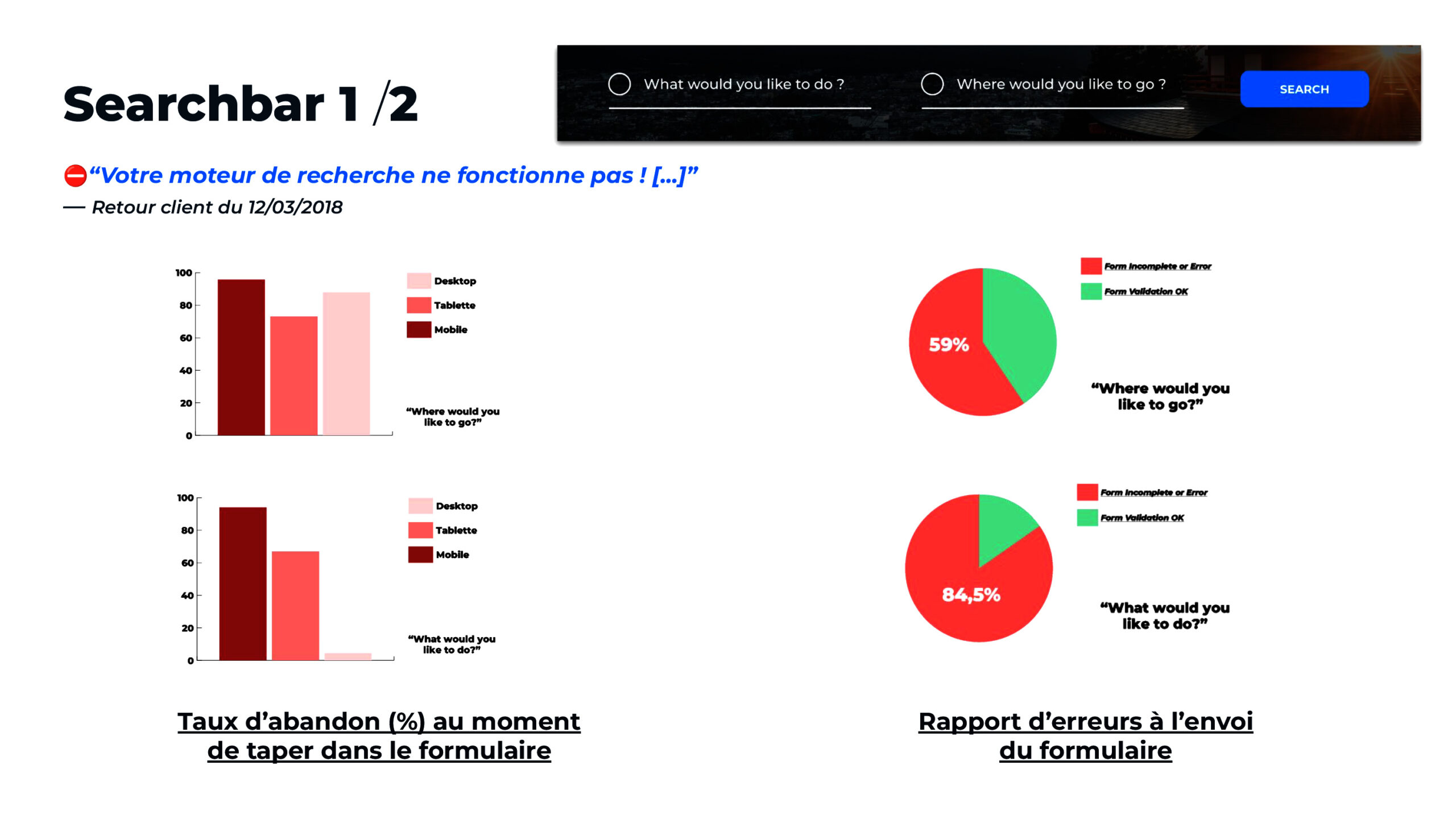 J’ai réussi à croiser des données de sources diverses afin de formuler des hypothèses d’amélioration d’un user flow dans le but d’augmenter le taux de conversion d’une page. -